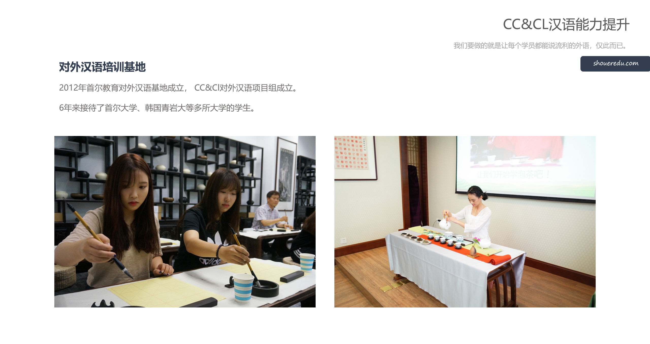 CC&CL為(wei) traditional culture experience and Chinese learning 的英?縮寫(xie),意為中國傳統?化體驗(yan)及(ji)漢語學習(xi)。CC&CL項(xiang)?是由(you)?爾教育獨?運營的中國?化傳承項(xiang)?。項?通過4周左右時間,