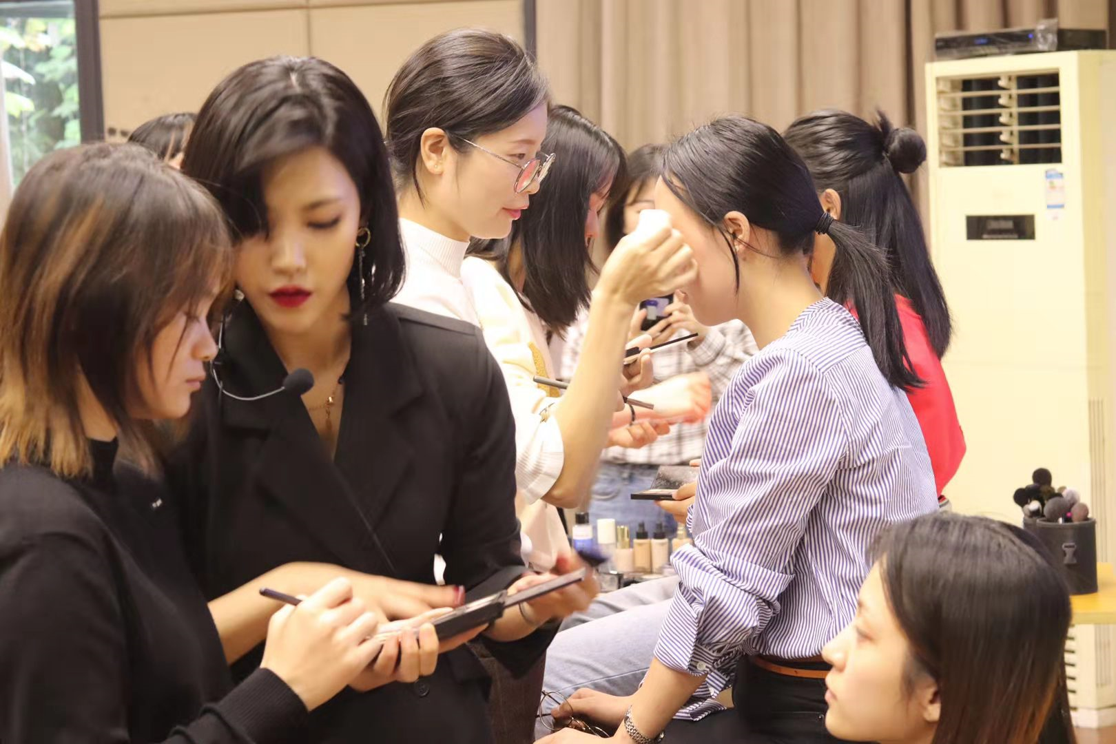 經過金老師的(de)細心指(zhi)導,同學們瞬間get到了妝容的(de)重點。